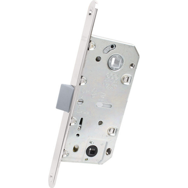 Врізний замок AGB Mediana Evolution з засувкою з|із| поліаміду для внутрішніх дерев'яних дверей. Поліаміди є жорсткими матеріалами з високою міцністю при розриві, а також високою зносостійкістю. Завдяки використаному матеріалу засувки, досягається максимальна безшумність закривання дверей. Механізм засувки AGB B011023503 підходить як для правосторонніх, так і для лівосторонніх міжкімнатних дверей. Перестановка сторони відкривання здійснюється без розтину механізму. При закриванні замку AGB B011023503 сантехнічною клямкою відбувається блокування ходу клямки, а в корпусі замку відбувається розрив взаємозв'язку між ходом руху дверної ручки і механізмом клямки. При цьому фалева ручка залишається в робочому положенні: її можна натиснути, не зламавши при цьому механізм замку. Також можна зафіксувати поворотом замикаючого пристрою засувку всередині корпусу замка. Корпус замок AGB B011023503 запечатаний, для запобігання влученню деревної стружки та пилу. Відстань між центром ручки до центру запірного отвору: 96мм. Видалення (Backset) від краю торцевої планки до центру ручки може бути рівним: 35 мм. Завдяки новому розміру Backset 35мм, замок можна врізати в вузькопрофільні двері.