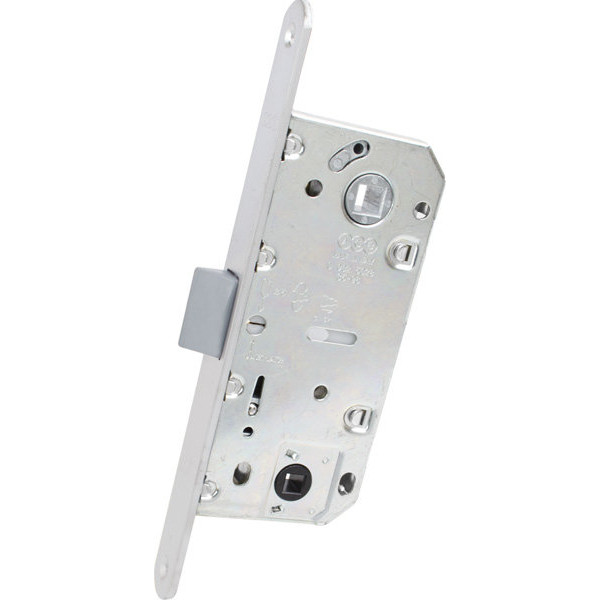 Врізний замок AGB Mediana Evolution з клапанкою з поліаміду для внутрішніх дерев'яних дверей. Поліаміди є жорсткими матеріалами з високою міцністю при розриві, а також високою зносостійкістю. Завдяки використаному матеріалу засувки, досягається максимальна безшумність закривання дверей. Механізм засувки AGB B011023503 підходить як для правосторонніх, так і для лівосторонніх міжкімнатних дверей. Перестановка сторони відкривання здійснюється без розтину механізму. При закриванні замку AGB B011023503 сантехнічною клямкою відбувається блокування ходу клямки, а в корпусі замку відбувається розрив взаємозв'язку між ходом руху дверної ручки і механізмом клямки. При цьому фалева ручка залишається в робочому положенні: її можна натиснути, не зламавши при цьому механізм замку. Також можна зафіксувати поворотом замикаючого пристрою засувку всередині корпусу замка. Корпус замка AGB B011023503 запечатаний, для запобігання попаданню деревної стружки та пилу. Відстань між центром ручки до центру запірного отвору: 96мм. Видалення (Backset) від краю торцевої планки до центру ручки може бути рівним: 35 мм. Завдяки новому розміру Backset 35мм, замок можна врізати в вузькопрофільні двері.