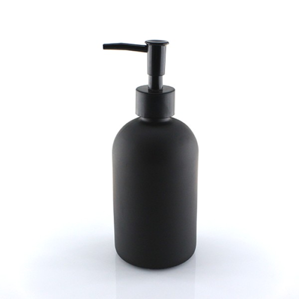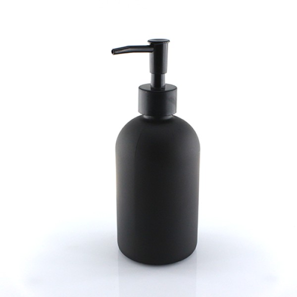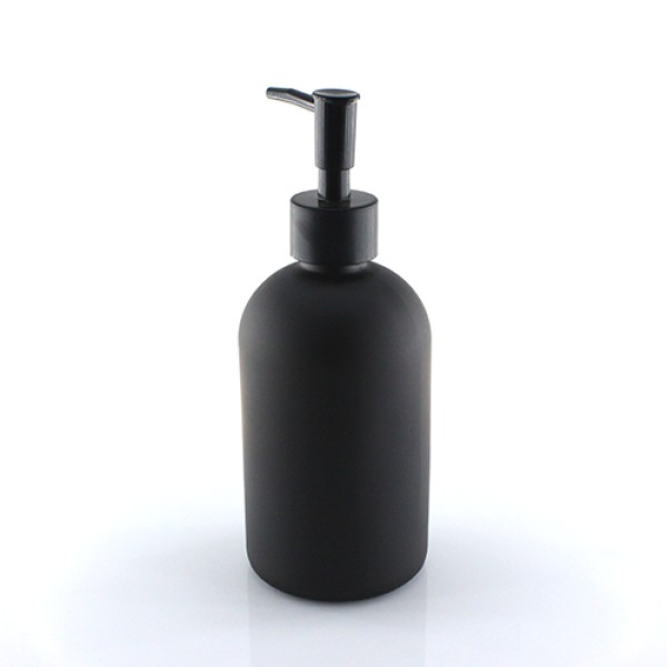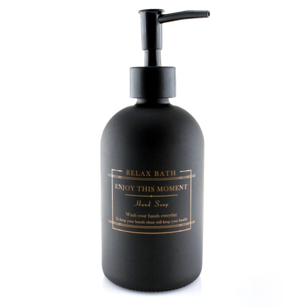 Черное стекло придает ванной элегантности. Дозатор работает плавно, мыло не капает.