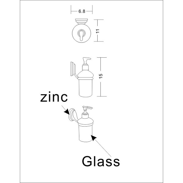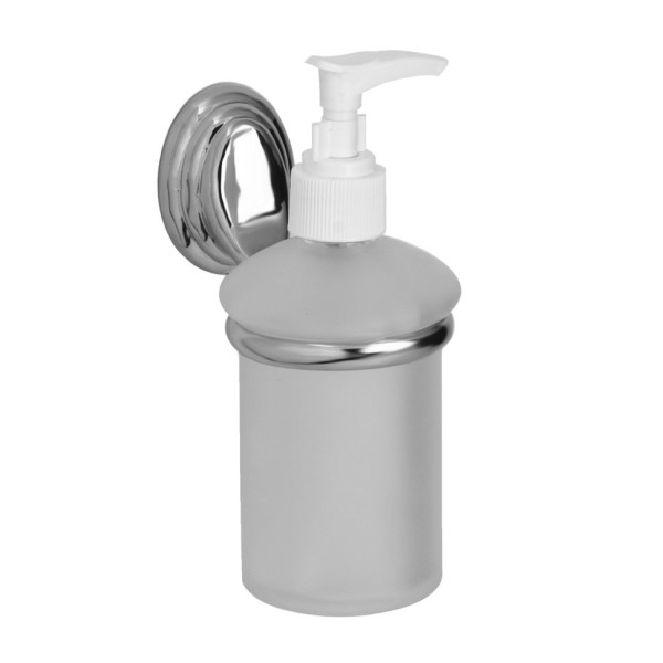 • Тип - подвесной; • Крепление к стене - дюбели; • Держатель - замак в цвете полированный хром; • Колба - матовое стекло 3 мм; • Носик диспенсера - белый пластик.