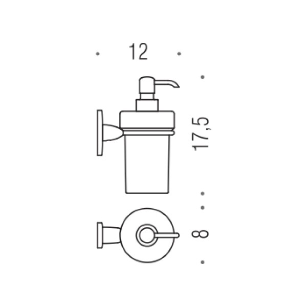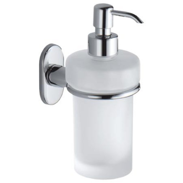 Дозатор рідкого мила підвісний Colombo Design Bart B9308 має класичну круглу форму. Ємність дозатора виконана з білого матового скла декорована хромованим держателем. Помпа дозатора має плавний хід і при використанні роздає рідке мило рівними порціями, не переливаючи його після натиску.