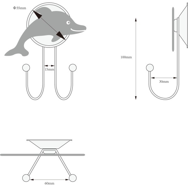Гачок подвійний Дельфін "Arino", 85×30×110 мм