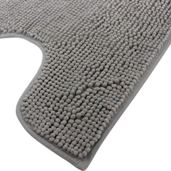 Килимок Trento — це миттєве відчуття комфорту та затишку для вашої ванної кімнати. Виготовлений з м'якої мікрофібри, він дарує приємне тепло та ніжність при кожному дотику. Сучасний U-подібний дизайн у глибокому графітовому кольорі естетично доповнює простір навколо унітазу, роблячи інтер’єр цілісним та елегантним. Спеціальна основа гарантує, що виріб надійно залишатиметься на місці, забезпечуючи стабільність та безпеку. Завдяки розмірам 500х450 мм, цей практичний аксесуар ідеально лягає на підлогу, додаючи функціональності та стилю.