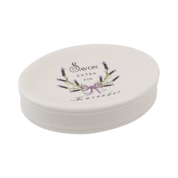 Виконана з високоякісної кераміки, вона приваблює погляд елегантним білим кольором, декорованим ніжним малюнком лаванди та рослинної тематики. Граційна форма мильниці забезпечує естетичне та практичне зберігання.