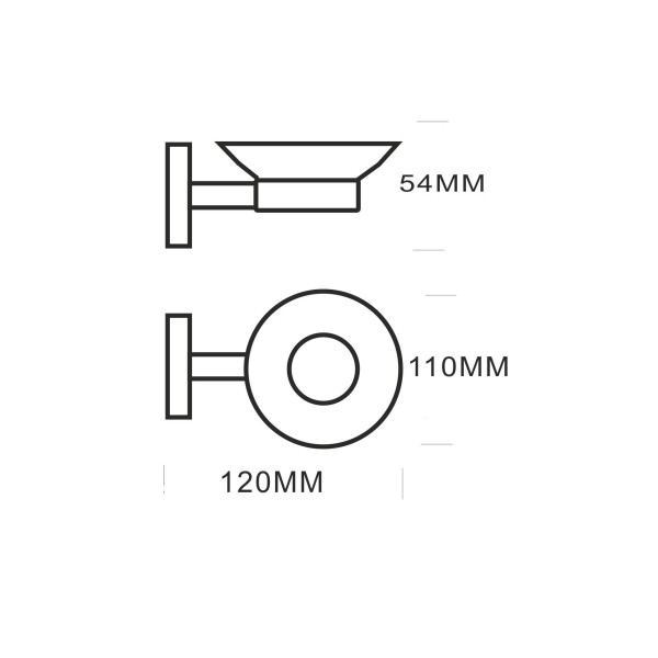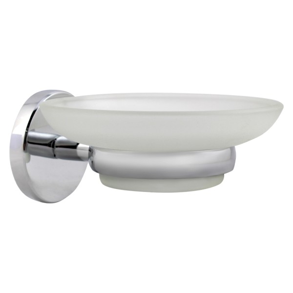 • Тип - подвесной; • Крепление к стене - дюбели; • Держатель - замак в цвете полированный хром; • Мыльница - матовое стекло 5 мм, круглая, диаметр 108 мм