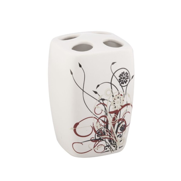 Стакан для зубних щіток Trento Primavera додасть до вашої ванної нотку весняної свіжості. Його елегантний силует поєднує класичну прямокутну форму із закругленими гранями, що створює м’який, сучасний вигляд. Квітковий орнамент, виконаний у яскравому поєднанні білого та червоного, миттєво освіжає простір. Trento Primavera розрахований на зручне зберігання одразу чотирьох зубних щіток, гарантуючи, що аксесуари кожного члена родини будуть на своєму місці. Універсальний дизайн цього стакана легко гармоніює з будь-якими іншими предметами інтер'єру. Ви отримуєте повністю готовий до використання аксесуар. Замовте Primavera, щоб оновити свій щоденний ритуал чистоти.