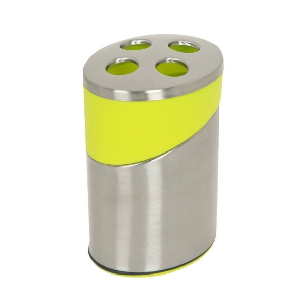 Тримач зубних щіток Trento Verde є черговим представником лінійки аксесуарів для ванної кімнати Verde від торгової марки Trento Design Studio. Яскравий, стильний, функціональний предмет у Вашу ванну кімнату. Виготовлений з нержавіючої сталі зі вставкою з полістиролу насиченого яскраво-зеленого кольору. Має чотири отвори для зубних щіток. Цікавий, неординарний стаканчик для зубних щіток допоможе зробити інтер'єр ванної кімнати сучасним і незвичайним.
