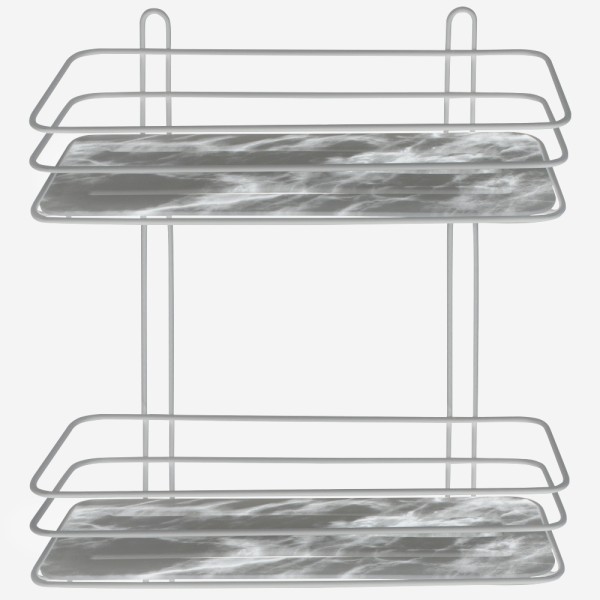 Полиця для ванної кімнати прямокутна подвійна "Arino", сталева, білий мармур, 260×110×298 мм