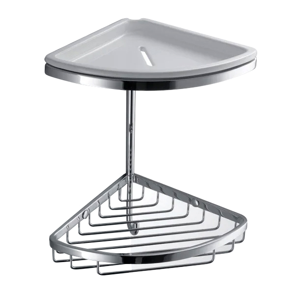 Елегантна подвійна поличка-сітка Colombo ідеально використовує кутовий простір вашої ванної кімнати. Виготовлена з блискучої полірованої латуні, вона абсолютно стійка до вологи та механічних пошкоджень, гарантуючи бездоганний вигляд на роки.