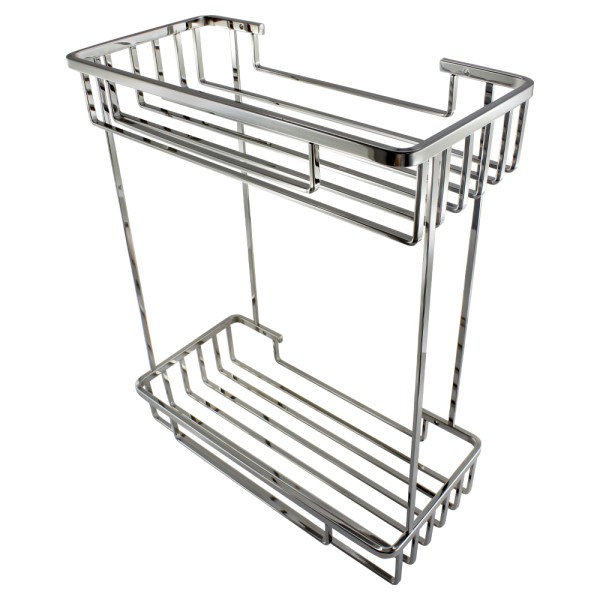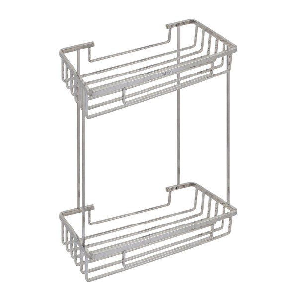 Міцна нержавіюча сталь захищена від вологи та корозії, а сітчаста конструкція дозволяє вмісту швидко висихати, запобігаючи застою води. Два рівні зберігання (345х130х270 мм) вмістять усі ваші аксесуари та засоби догляду. Підвісне кріплення на дюбелях забезпечує надійність, а всі необхідні елементи ви знайдете в пакунку. Це практичне рішення для порядку, яке не втратить свого блиску.
