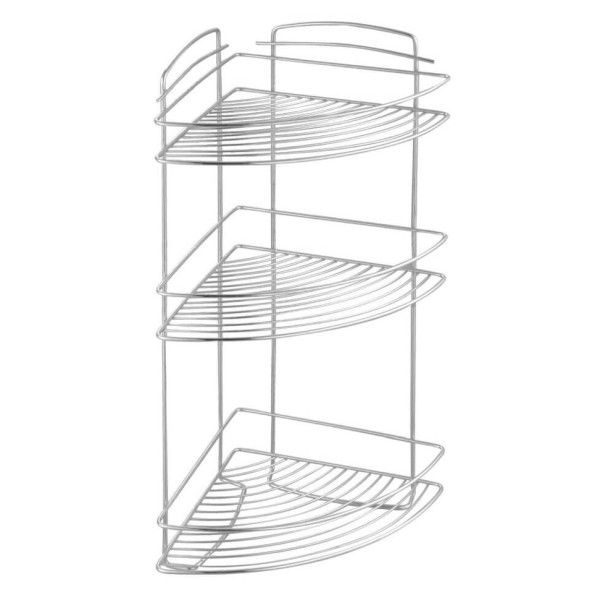 Елегантне рішення для оптимізації простору: потрійна кутова поличка-сітка. Три яруси дозволяють розмістити весь необхідний догляд та аксесуари, звільняючи поверхні у ванній кімнаті чи кухні.