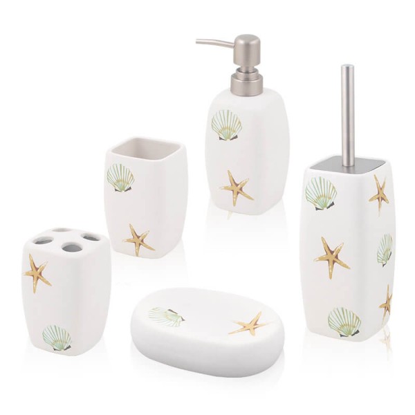 Стакан Trento Stella Marina Bianca — це морський акцент, що привносить свіжість до вашої ранкової рутини. Виготовлений із міцної білої кераміки, він прикрашений витонченим малюнком морських черепашок та зірок. Цей елегантний аксесуар у біло-бежевій гамі створений для зручного зберігання до чотирьох зубних щіток. Він чудово доповнить літній комплект серії Stella Marina Bianca від Trento Design Studio, миттєво перетворюючи звичайну ванну кімнату на оазис спокою та елегантності. Оберіть цей тримач, щоб щодня насолоджуватися відчуттям узбережжя.