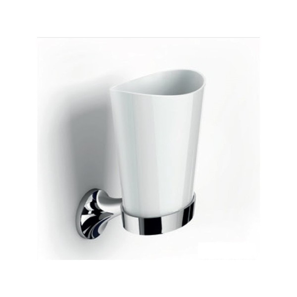 Тримач з полірованого хрому елегантно фіксує склянку, виготовлену з високоміцного білого матового скла. Таке поєднання матеріалів гарантує довговічність і легкість у догляді. Завдяки настінному кріпленню за допомогою дюбелів, стакан ефективно звільняє робочі поверхні, забезпечуючи гігієнічне зберігання зубних щіток. Обирайте Trento для практичного доповнення, яке додасть нотку новизни вашій ванній кімнаті.