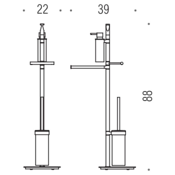 Стійка Colombo Planets — це елегантний центр гігієни для вашої ванної кімнати, що поєднує п'ять необхідних функцій в одній конструкції. Виготовлена зі 100% латуні з антикорозійним покриттям, ця модель гарантує виняткову довговічність та стійкість до вологи. Глянцеве хромоване оздоблення та універсальний дизайн додають простору лаконічної розкоші.