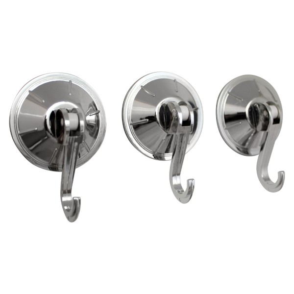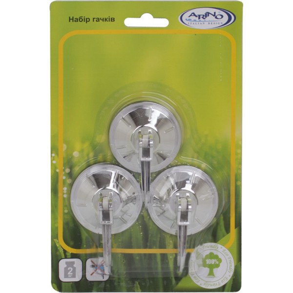 Тип-підвісний; Матерал – пластик; Спосіб кріплення - вакуумна присоска; Колір – хром; 3 гачки в упаковці.