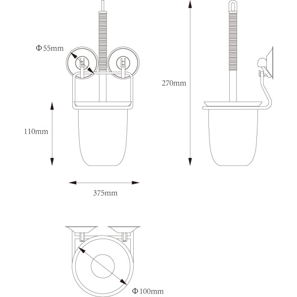 • Тип - подвесной; • Крепление к стене -вакуумный крепеж; • Держатель колбы - стальная проволока 4 мм проволока, • Колба - белый амтовый пластик; • Щетка - полиэтилен, высота 95 мм, диаметр 75 мм, белая; • Рукоятка - серебристый пластик, длина 230 мм