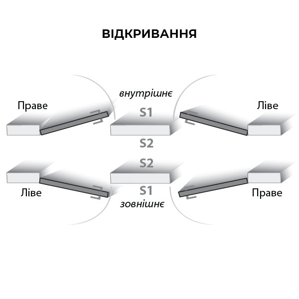 - Можливість монтажу з лівим чи правим, зовнішнім або внутрішнім відкриванням; \n