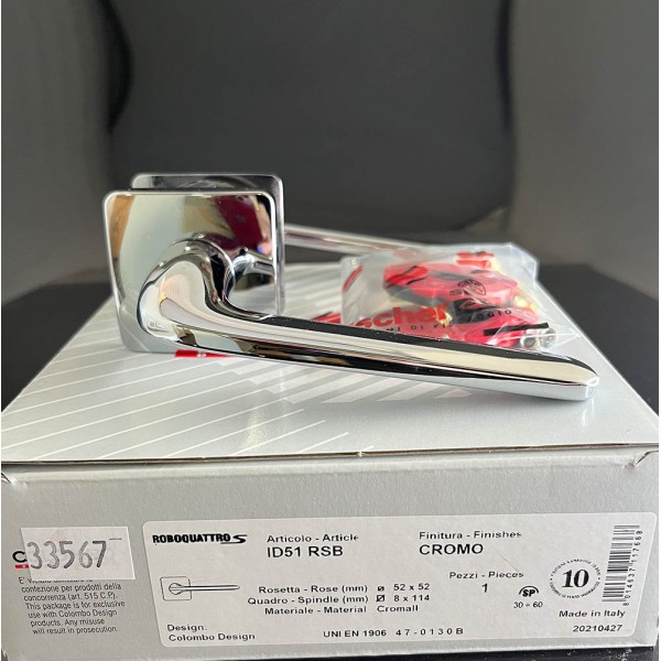 Дверна ручка Colombo Design RoboquattroS виконана в сучасному стилі. Унікальність дизайну підкреслюється лаконічним мінімалізмом у поєднанні з оригінальним покриттям - хром. Довговічність терміну експлуатації виробу забезпечується застосуванням спеціального гальванічного багатошарового покриття запобігає його знос. У конструкції ручки використовується міцна сталева пружина в спеціальній касеті, вона підтримує ручку і запобігає її провисання, що підвищує і збереження механізму замка. Ця сталева пружина має три витка і захищена від впливу вологи, а тому ручка ніколи не буде скрипіти.
