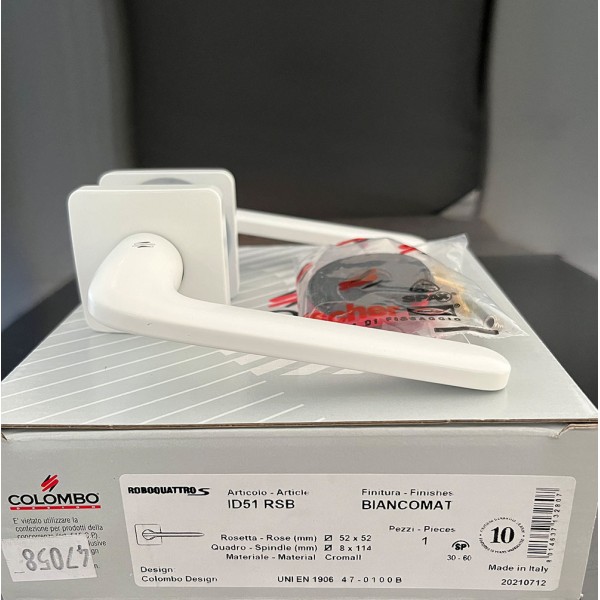 Дверна ручка Colombo Design RoboquattroS виконана в сучасному стилі. Унікальність дизайну підкреслюється лаконічним мінімалізмом у поєднанні з оригінальним покриттям – матовий білий. Довговічність терміну експлуатації виробу забезпечується застосуванням спеціального гальванічного багатошарового покриття, що запобігає його зносу. У конструкції ручки використовується міцна сталева пружина у спеціальній касеті, вона підтримує ручку та запобігає її провисанню, що підвищує і збереження механізму замка. Ця сталева пружина має три витки і захищена від впливу вологи, а тому ручка ніколи не буде рипіти. Дверна ручка Colombo Design RoboquattroS може встановлюватися як на міжкімнатні так і на вхідні двері. . Монтаж ручки простий і не вимагатиме особливих навичок.