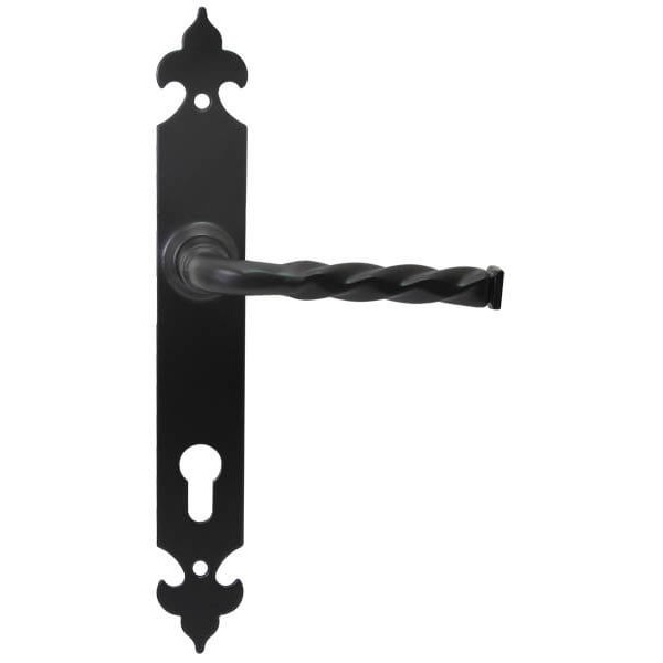 Дверна ручка на планці BRUNO EX 101 чорна під ключ, виконана в класичному стилі. Довговічність терміну експлуатації виробу забезпечується застосуванням високоміцних сплавів і спеціального гальванічного покриття запобігає його знос.