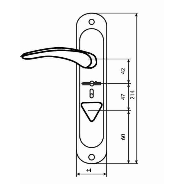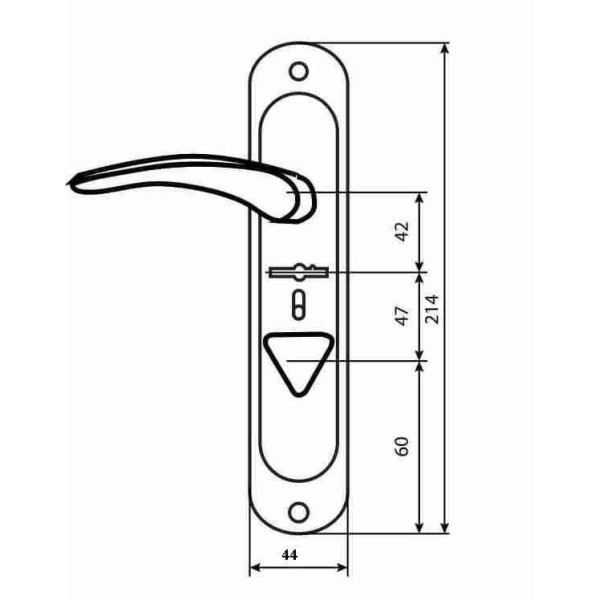Ручка дверна на планці з отвором під сувальдный ключ, поворотною ручкою для засувки. Ручки правого і лівого відкриття з міжцентровою відстанню 42мм. Використовується для комплектації замків важкої серії BRUNO BR-42.