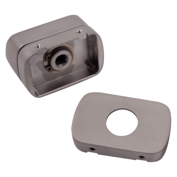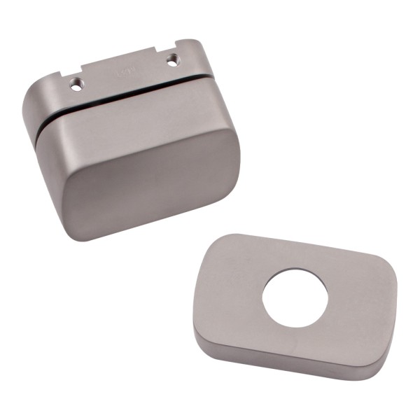 Накладка на прямокутній прихованій розеті має накладний принцип кріплення та представлена в сучасному кольорі матовий хром.