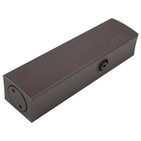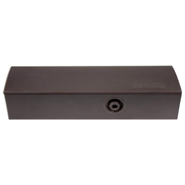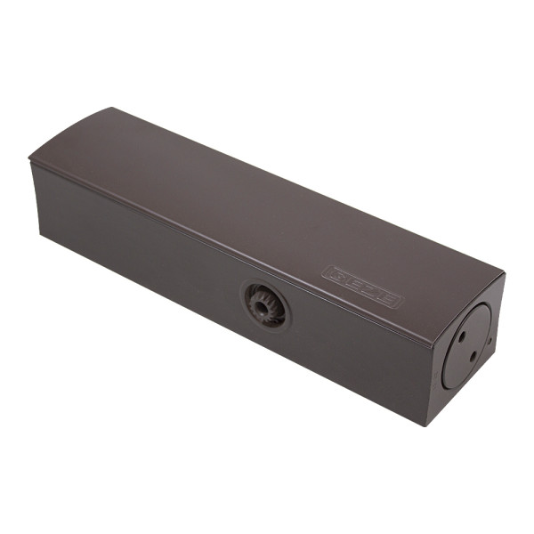 Доводчик Geze TS 2000 у коричневому кольорі без тяги. Обладнання підходить для лівосторонніх та правосторонніх дверей завширшки не більше 1250 мм. Вибіркова сила закриття EN 2/4/5 за допомогою зміщеного монтажу. Максимальний кут відкриття 180 градусів.
