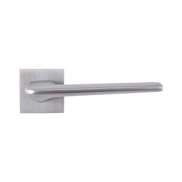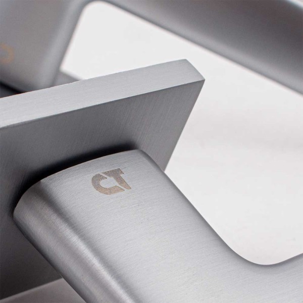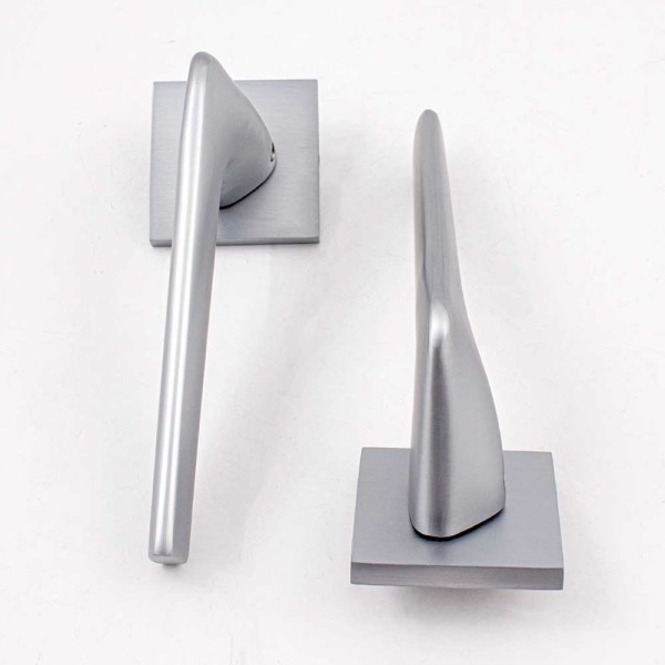 Дверна ручка Comit Flagman на квадратній розетті, виготовлена з алюмінію і має незвичайні форми, що робить її дизайн незабутнім. Comit Flagman протягом тривалого часу зберігає ідеальний зовнішній вигляд завдяки спеціальному покриттю. Зручні форми ручки та якісна пружина забезпечують м'який натиск. Ручка представлена в кольорі брашований матовий хром. Має тонку розетту, товщиною всього 6 мм, накладний принцип кріплення, що не вимагає особливих навичок при встановленні.