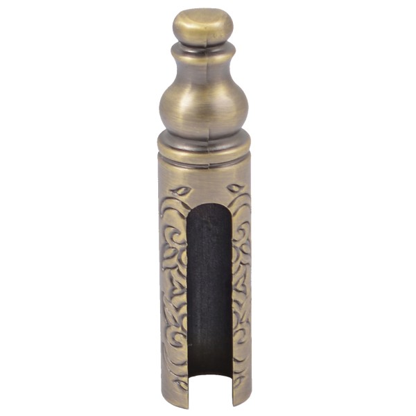Ковпачок для завіси має декоративну функцію, здатний надати видимій частині дверних петель вишуканий зовнішній вигляд. Крім того, наявність ковпачка захищає завісу від механічних пошкоджень або подряпин. Аксесуар виготовлений з високоякісного матеріалу цинк, що тривалий час зберігає презентабельний зовнішній вигляд. Дизайн ковпачка має фігурну верхівку та візерунки на поверхні виробу. Дана модель чудово доповнить класичний варіант оформлення інтер'єру.