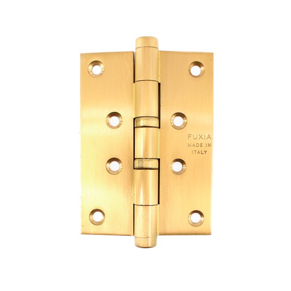 Петля Fuxia Art.2002200/C 4*3 для міжкімнатних дверей виготовлена ​​з латуні в кольорі матова латунь. Контактируючі поверхні здатні забезпечити надійний і плавний рух петлі. Тип - петля карткова. Розмір петлі – 100мм.
