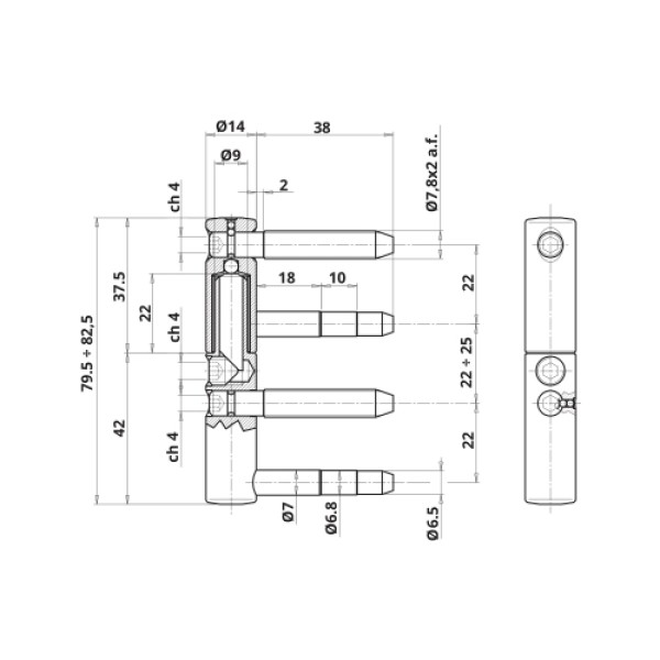 Петля Otlav CF495140H119(102)-CG495140H102 для міжкімнатних дерев'яних дверей забезпечена двома різьбовими і двома напрямними штифтами для центрування в горизонтальній площині. Для максимальної надійності і довговічності в конструкції дверної петлі Otlav використовується втулка з кульковою віссю зі спеціальною пластичним змащенням, яка надовго збереже рухливість, навіть при досить частому відкриванні.