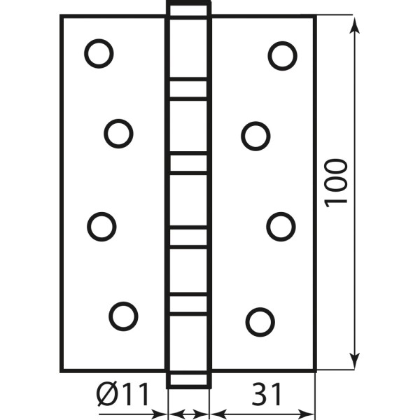 Петля RDA карткова універсальна, матеріал сталь, 4 підшипники, гальванічне покриття. Висота 100 мм, товщина крила 2,5 мм.