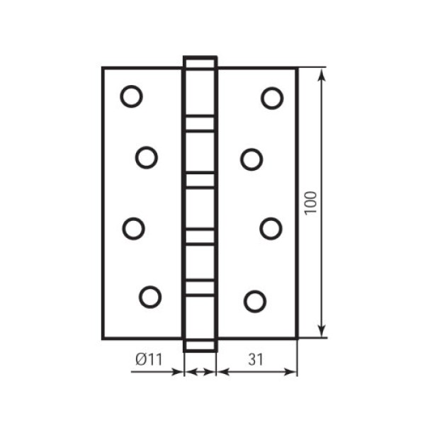 Дверна петля RDA 100*3*2,5 для міжкімнатних дерев'яних дверей виготовлена з високоміцного металу. Для максимальної надійності та довговічності в конструкції дверної петлі RDA використовується 4 тальні підшипники.