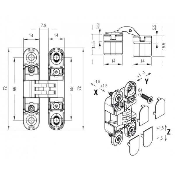Петля меблева прихована, універсальнаKrona Koblenz "KUBIKINA K6100" дозволяє відкривати дверне полотно на 180 °. Завдяки можливості регулювання даної петлі в трьох площинах (вертикаль полотна, горизонталь полотна, глибина полотна щодо дверної коробки) можна встановити і вирівняти дверне полотно з точністю до міліметра.