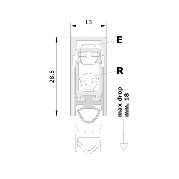 Подвійне регулювання (Гвинт Е: опускання; Гвинт R: нахил);