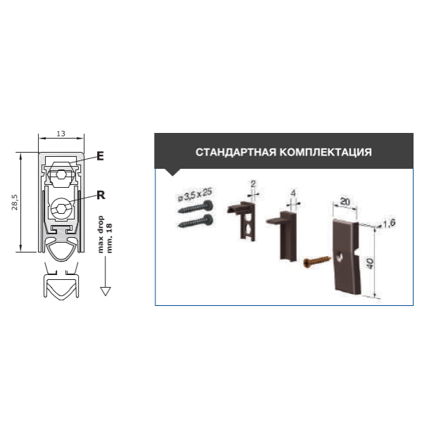 - Подвійне регулювання (Гвинт Е: опускання; Гвинт R: нахил);