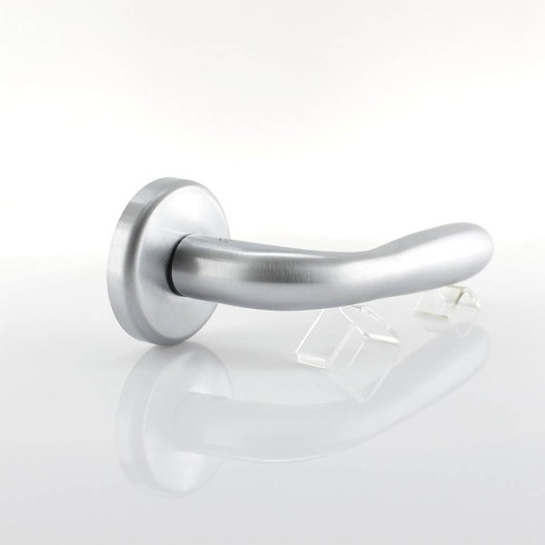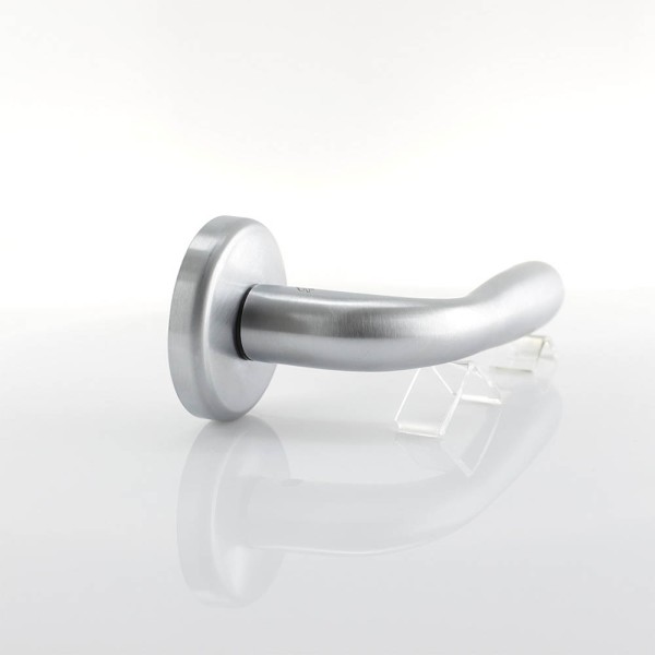 Дверна ручка Colombo Design Robot виконана в сучасному стилі. Унікальність дизайну підкреслюється лаконічним мінімалізмом у поєднанні з оригінальним покриттям - матовий хром. Довговічність терміну експлуатації виробу забезпечується застосуванням спеціального гальванічного багатошарового покриття запобігає його знос. У конструкції ручки використовується міцна сталева пружина в спеціальній касеті, вона підтримує ручку і запобігає її провисання, що підвищує і збереження механізму замка. Ця сталева пружина має три витка і захищена від впливу вологи, а тому ручка ніколи не буде скрипіти.