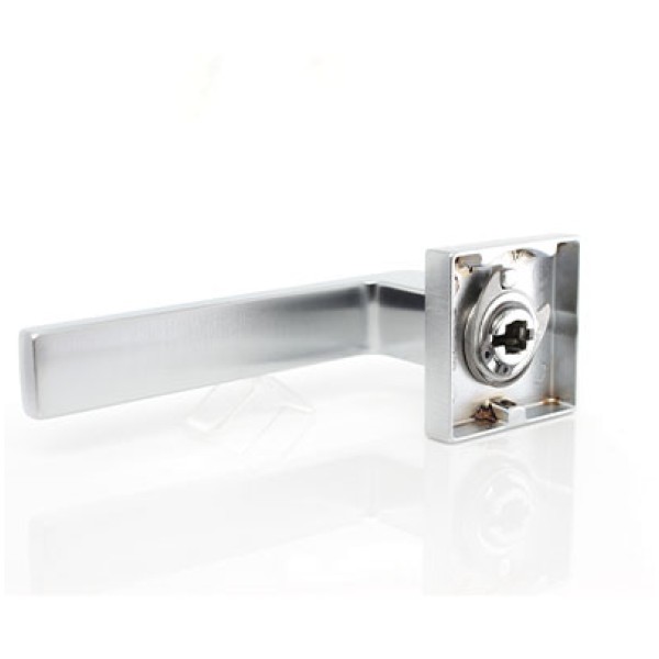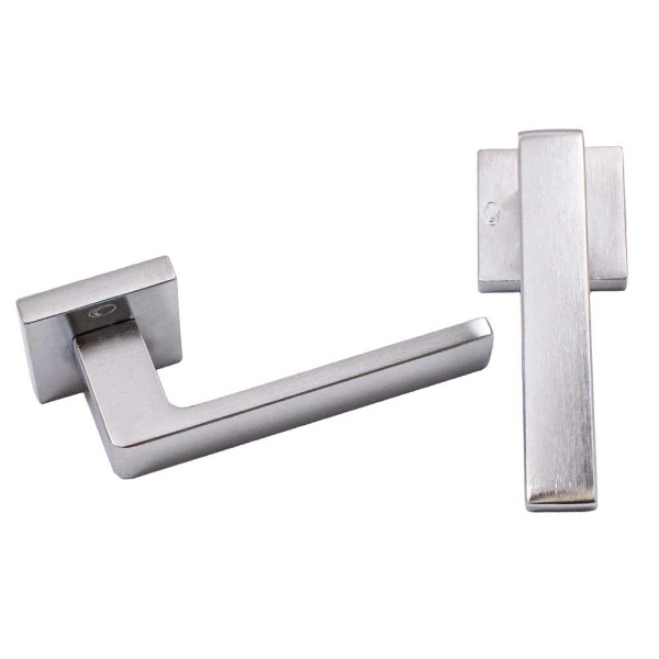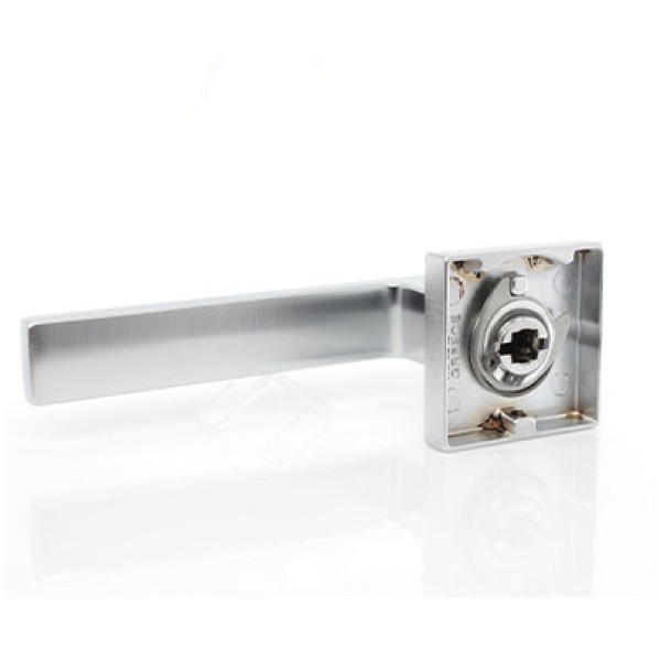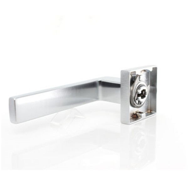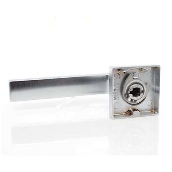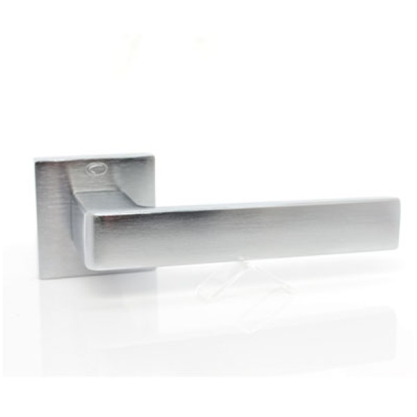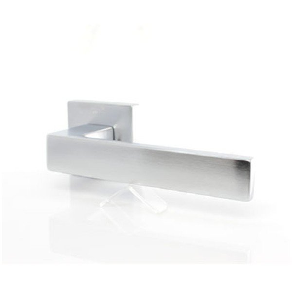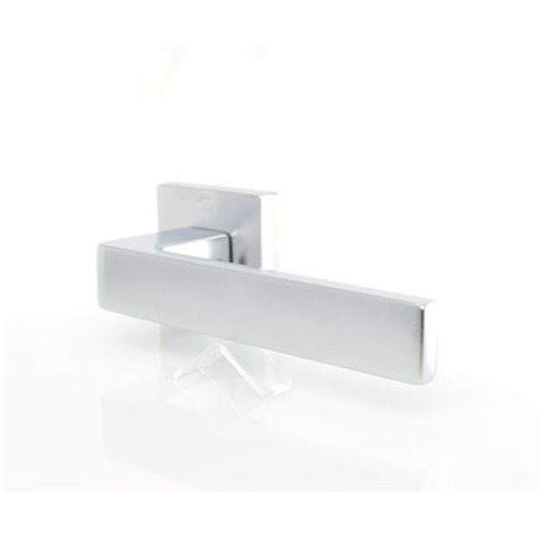 Ручка Convex 1605 на квадратній розетці, матовий хром. Модель для міжкімнатних дверей. Виготовлена зі спеціалізованого сплаву ZAMAK, який складається з алюмінію та цинку та відрізняється високими зносостійкими властивостями. Додаткове гальванічне покриття. Довжина ручки 130 мм. Розміри розетки 50х50 мм.