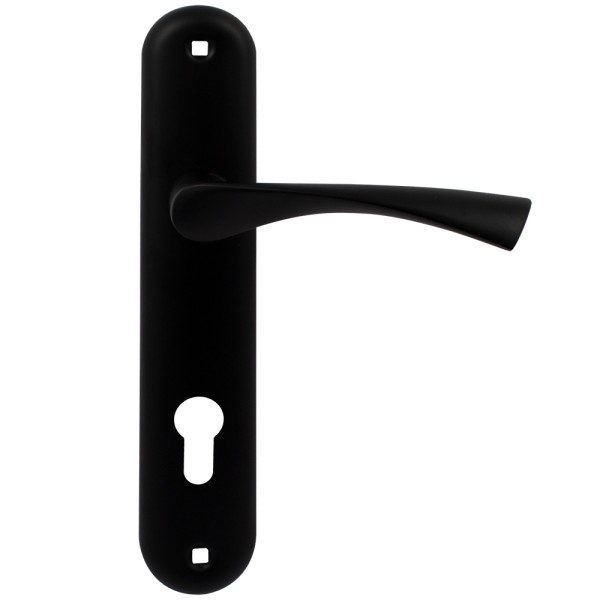 При виготовленні ручки використовується якісна високоякісна сталь, а нанесене на поверхню покриття захищає модель від впливу корозії, а також зношування, протягом тривалого часу зберігаючи її первозданний зовнішній вигляд. Дверна ручка на планці BRUNO Vela призначена для встановлення на замок з циліндром.Модель представлена в сучасному колірному варіанті чорний матовий та вдало пасує до дверей в темних тонах.