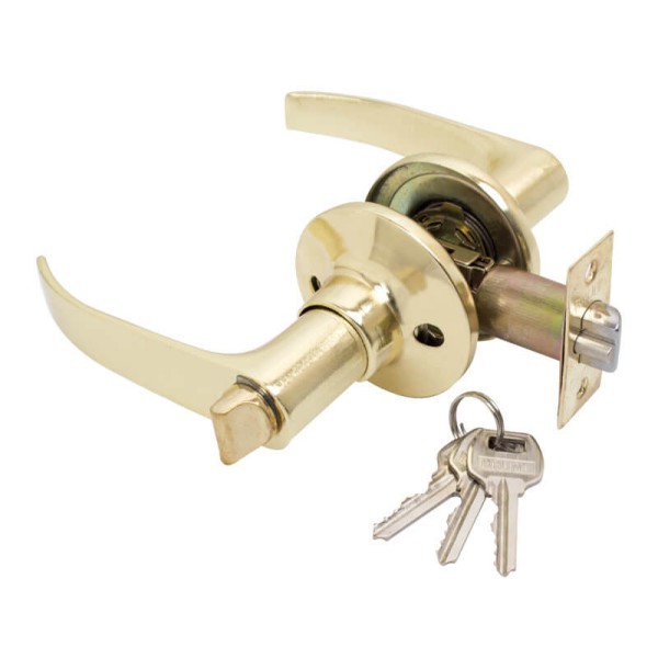 Ручка-клямка Bruno для міжкімнатних дверей в кольорі полірована латунь комплектується: врізний універсальної засувкою торгової марки Bruno і посиленою ручкою з фіксатором/ключем. Для максимальної надійності і довговічності в конструкції використовуються сталеві елементи. Ручка виконана з високоміцного сплаву зі спеціальним покриттям, що забезпечує високу зносостійкість. Монтаж простий і не вимагає спеціальних навичок.
