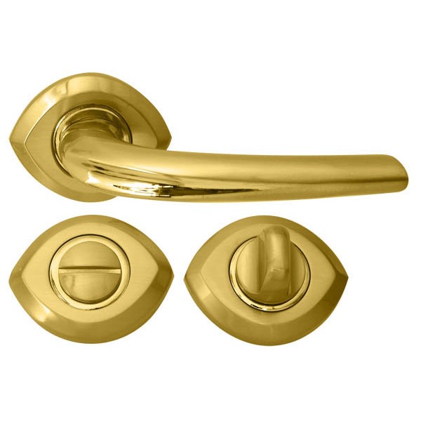 Дверна ручка RDA 0080 AN-02 WC з накладками-поворотниками золото/матова латунь (14218)