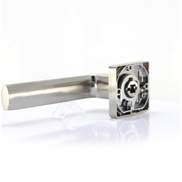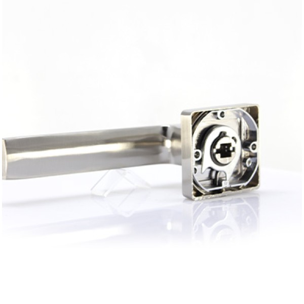 Дверна ручка RDA Cube. Якість виробленої продукції жорстко контролюється на всіх етапах виробництва. Всі ручки торгової марки RDA відповідає українським Стандартам і європейським стандартам. Використання високоякісних матеріалів і багатошарове покриття надають дверним ручкам високі експлуатаційні властивості, корозійну і зносостійкість, механічну міцність і довговічність. Дверні ручки придатні для установки на вхідні та міжкімнатні двері, надійно кріпляться до дерев'яних і металевих полотен. Широкий модельний ряд дверних ручок RDA виконується в сучасному дизайні і повністю відповідає європейським тенденціям.