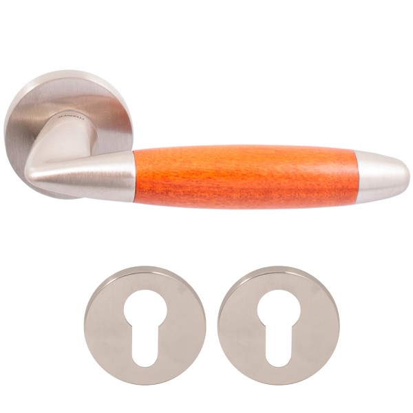 Дверна ручка Mandelli 461 Totem у кольорі нікель матовий/вишня.Ручка зроблена з чистої латуні і має багатошарове покриття, завдяки чому ручка прослужить багато років.