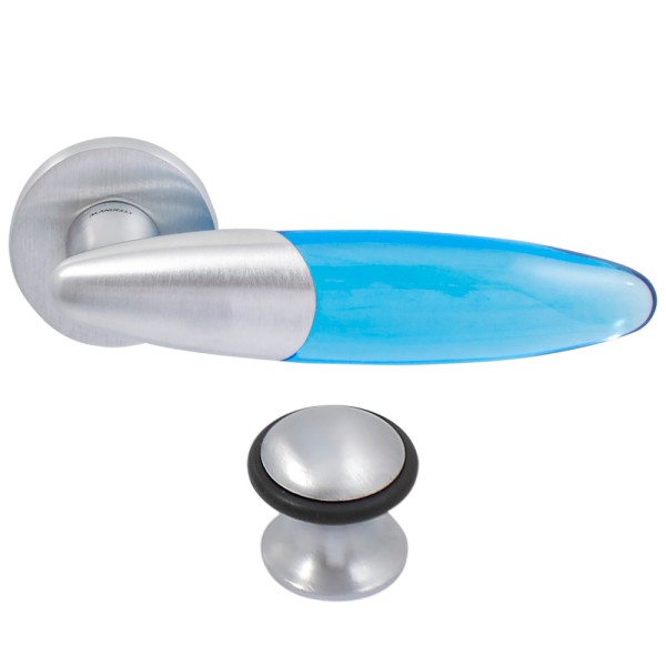 Дверна ручка Mandelli 501 Bip у кольорі хром матовий/аквамарин .Ручка зроблена з чистої латуні і має багатошарове покриття, завдяки чому ручка прослужить багато років.