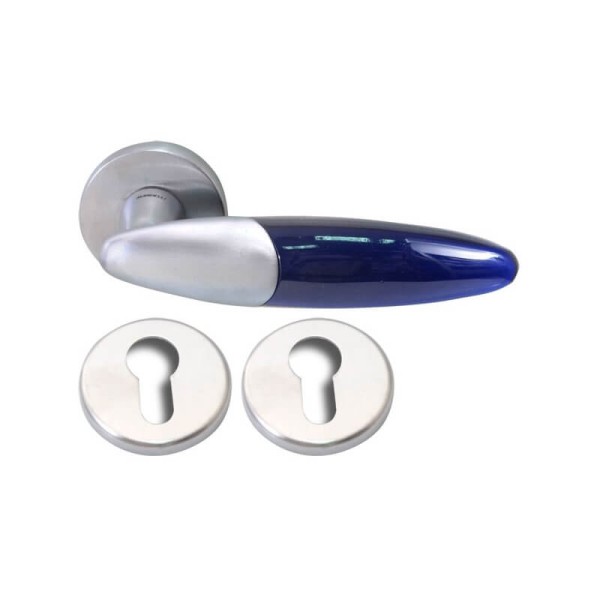Дверна ручка Mandelli 501 Bip у кольорі хром матовий/синій.Ручка зроблена з чистої латуні і має багатошарове покриття, завдяки чому ручка прослужить багато років.