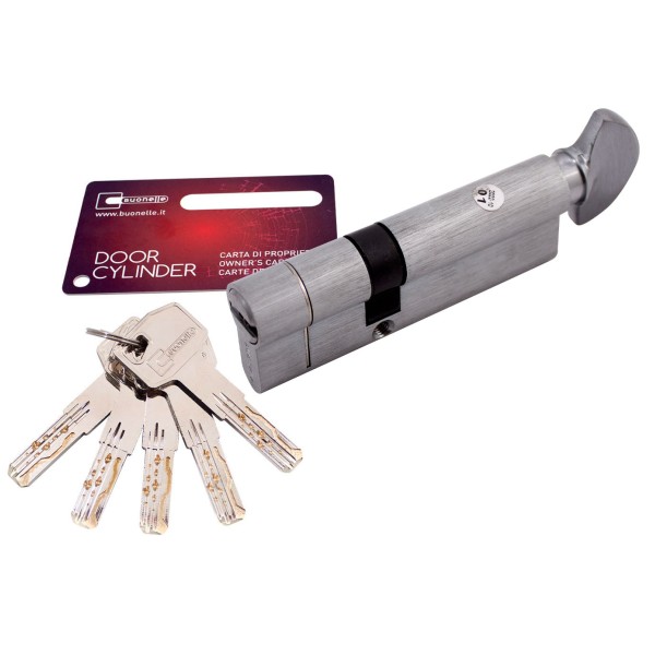 В комплекті з циліндром передбачено 1 монтажний ключ, призначений для використання під час проведення ремонтних робіт, по закінченню яких циліндр Buonelle перекодується під основний комплект. З метою особистої безпеки п’ять ключів з основного комплекту та картка власника герметично запаковані. що виключає можливість копіювання ключів. Циліндри Buonelle для замків – якість на варті безпечності.