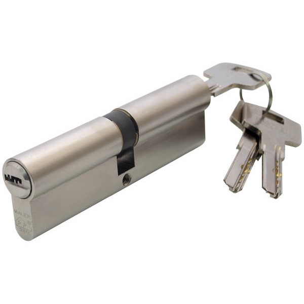 Стандарт DIN 18254-EN 1303. Ступінь секретності: 1170000 комбінацій. Колір: нікель сатин. Профіль ключа: Е2. Захист від бампінгу. Спеціальна захист від висвердлювання. Захист від витягування ротора: поперечні сталеві штифти в роторі. Сертифікація: SKG**, M