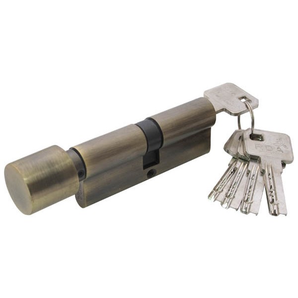 Циліндр дверний RDA 40/50мм лазерний 90мм 5 ключів круглий поворотник антична латунь (12897)