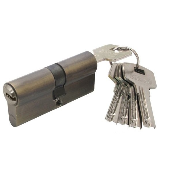 Циліндр дверний ВRUNO 30/30мм ZN лазерний 60мм 5 ключів, латунь антична