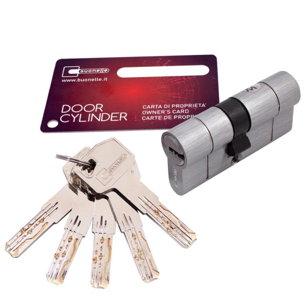 В комплекті з циліндром передбачено 1 монтажний ключі, призначений для використання під час проведення ремонтних робіт, по закінченню яких циліндр Buonelle перекодується під основний комплект. З метою особистої безпеки п’ять ключів з основного комплекту та картка власника герметично запаковані. що виключає можливість копіювання ключів. Циліндри Buonelle для замків – якість на варті безпечності.